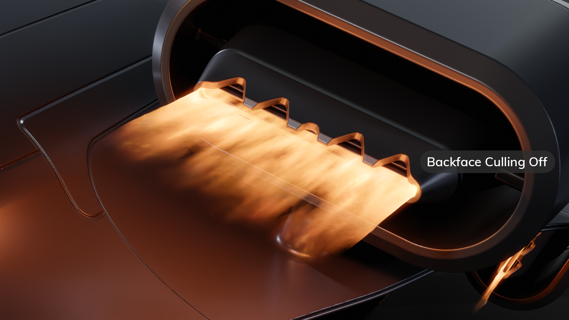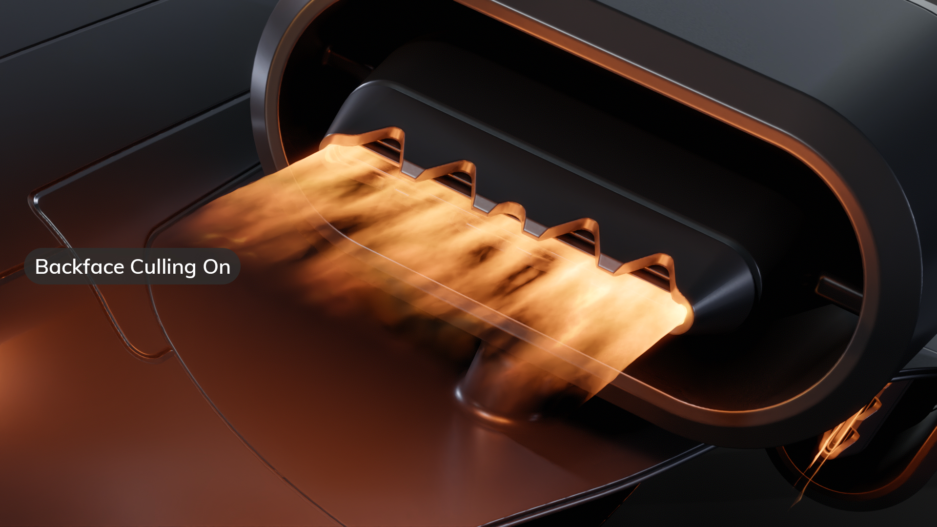 Since fire is visible from all angles, disabling Cull Back Faces in the effect mesh’s settings will create a double-sided material and render the effect from every perspective. This makes the flames appear more volumetric rather than disappearing when viewed from the side. This can result in an intensification of the effect, so you may need to adjust the textures.
