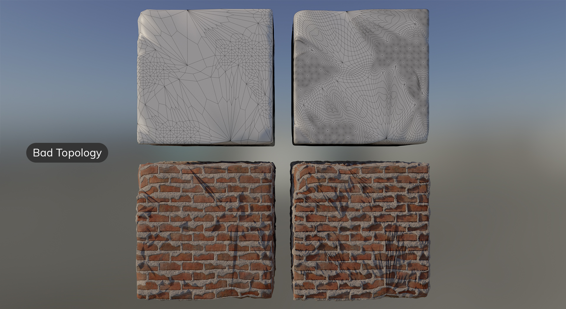 Drag the handle between the images to compare the results using bad topology vs. good topology.